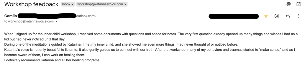 Here you can read what some participants of the Inner Child workshop have shared about their experience.
