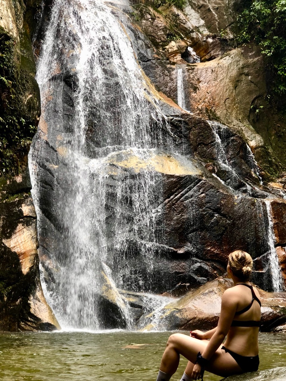 After an hour’s drive, we arrived at a private property from where we set off through the jungle toward the waterfall. Still tired but even more euphoric, I followed the improvised path covered with leaves and mud. My eyes were wide open, completely focused on the new and exotic surroundings.